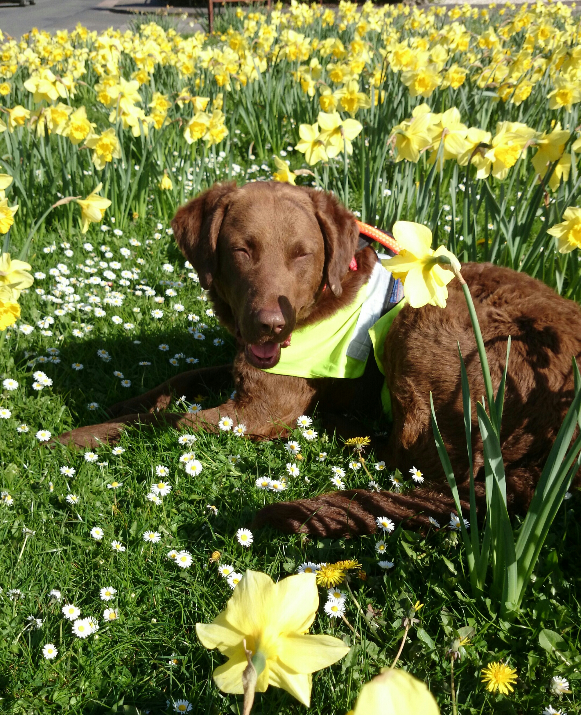 Here are some pictures from today. Roman remains in what is now Caerwent, and my beautiful Syd posing on a patch of daffodils in some poor unsuspecting folks communal garden ( not one daffodil was harmed in the taking of this photo)